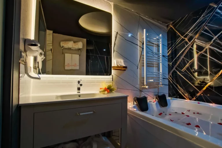 Deluxe Suitimiz, şehrin büyüleyici manzarasını odanızın konforunda keşfetmenizi sağlar. Sofistike ve modern dekoruyla tasarlanmış bu geniş alan, estetik ve rahatlığı bir araya getirir. Jakuzi olanağıyla günün yorgunluğunu atabilir, özel anlarınızı unutulmaz kılabilirsiniz. Konforlu oturma alanları, özenle seçilmiş detaylar ve sunduğu ayrıcalıklarla Deluxe Suit, hem dinlenmek hem de özel bir konaklama deneyimi yaşamak isteyen misafirler için ideal bir ortam sunar.