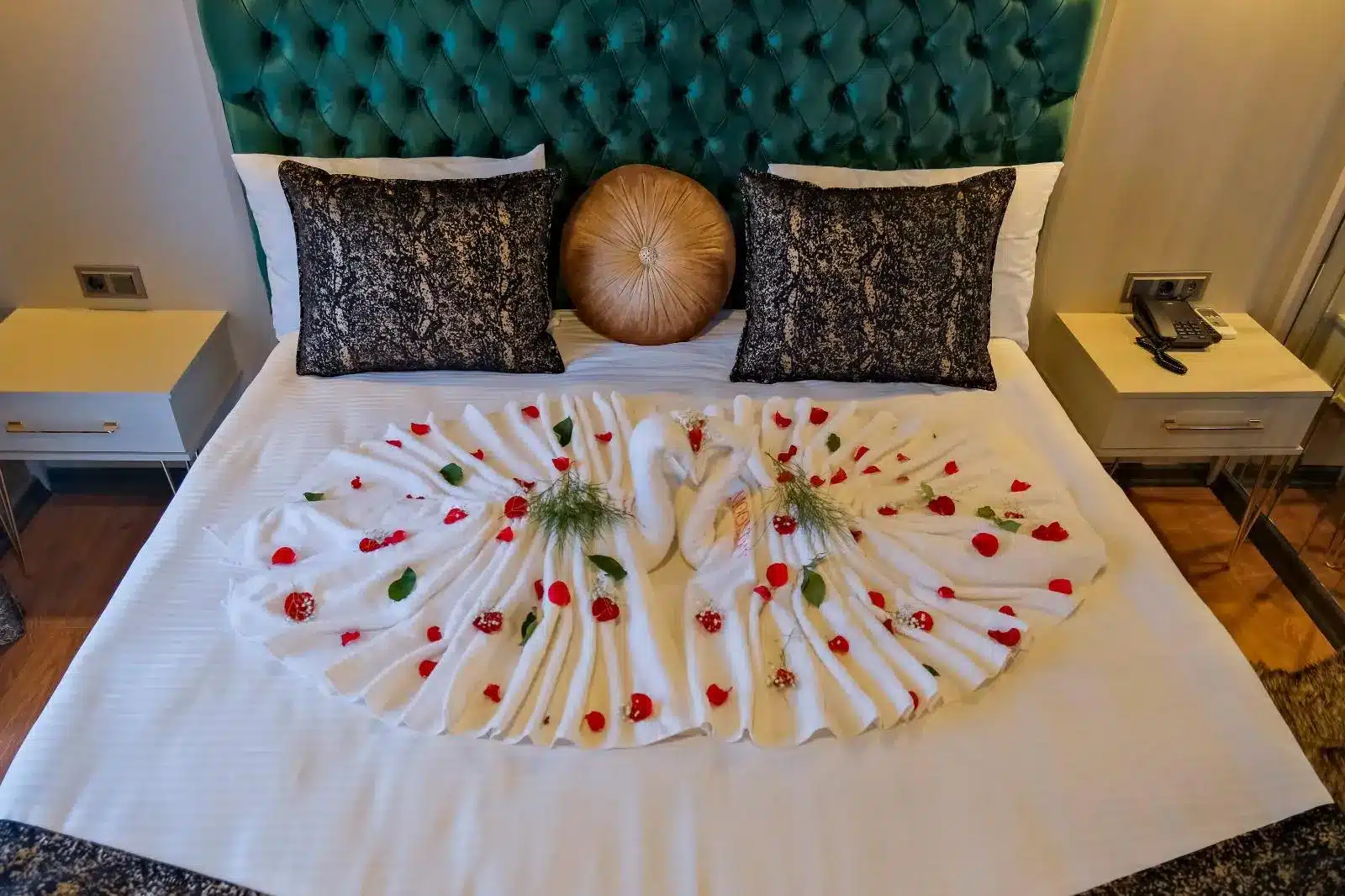 Deluxe Suitimiz, şehrin büyüleyici manzarasını odanızın konforunda keşfetmenizi sağlar. Sofistike ve modern dekoruyla tasarlanmış bu geniş alan, estetik ve rahatlığı bir araya getirir. Jakuzi olanağıyla günün yorgunluğunu atabilir, özel anlarınızı unutulmaz kılabilirsiniz. Konforlu oturma alanları, özenle seçilmiş detaylar ve sunduğu ayrıcalıklarla Deluxe Suit, hem dinlenmek hem de özel bir konaklama deneyimi yaşamak isteyen misafirler için ideal bir ortam sunar.